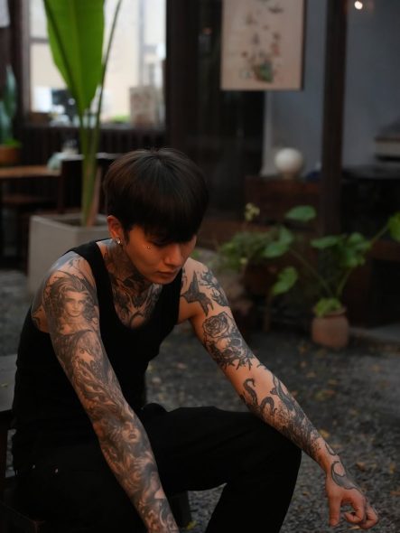 Apprenons à connaître l'incroyable Implastoun tatoueur sud-coréen dont l'approche audacieuse et fluide du noir est redéfini les limites du tatouage